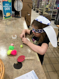By the time we were finished, she had 5 lovely craft items, and we had stayed WAY longer than we had planned. It turns out that crafting for kids at Pat Catans is a pretty common thing. I'm sure my darling and I will be back, although weekly trips into a giant and fabulous craft store might not be the greatest thing for my budget!
