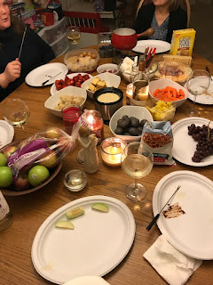 As the week wore on, I started to think about the upcoming gathering and the concept of Hygge (as explained in this fun little book that I picked up). The book explained that I should have candles. Not a problem, I have tons of random candles. The book also explained that it would be more Hygge to have a sort of group potluck where the cooking is all done at the same time at someone's house than to have pitchers of cocktails and teeny tiny little hors d'oeuvres. So I called up my friends who were coming and told them I had changed my mind and we would be having fondue! It seemed more Hygge even though it's Swiss and not Danish. And I should probably call it Gemütlichkeit because my heritage is German and not Danish. They sort of mean the same thing although it's more of a cultural thing in Denmark, I guess.